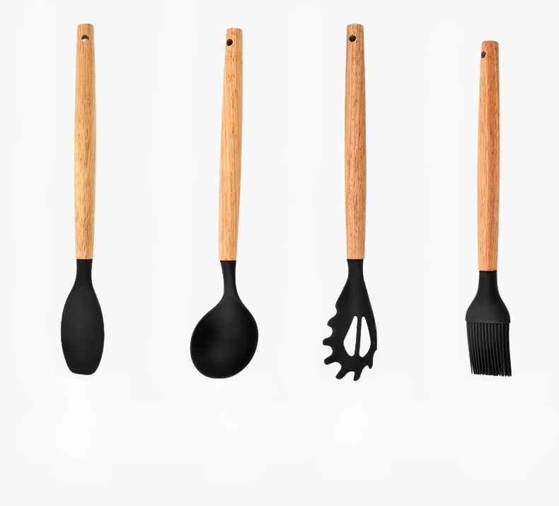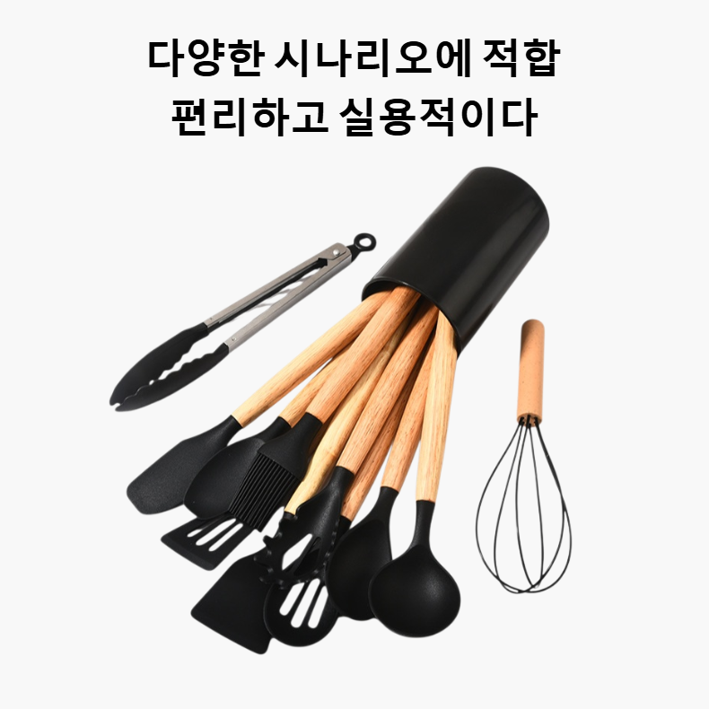 나무 손잡이 실리콘 주방기구 세트