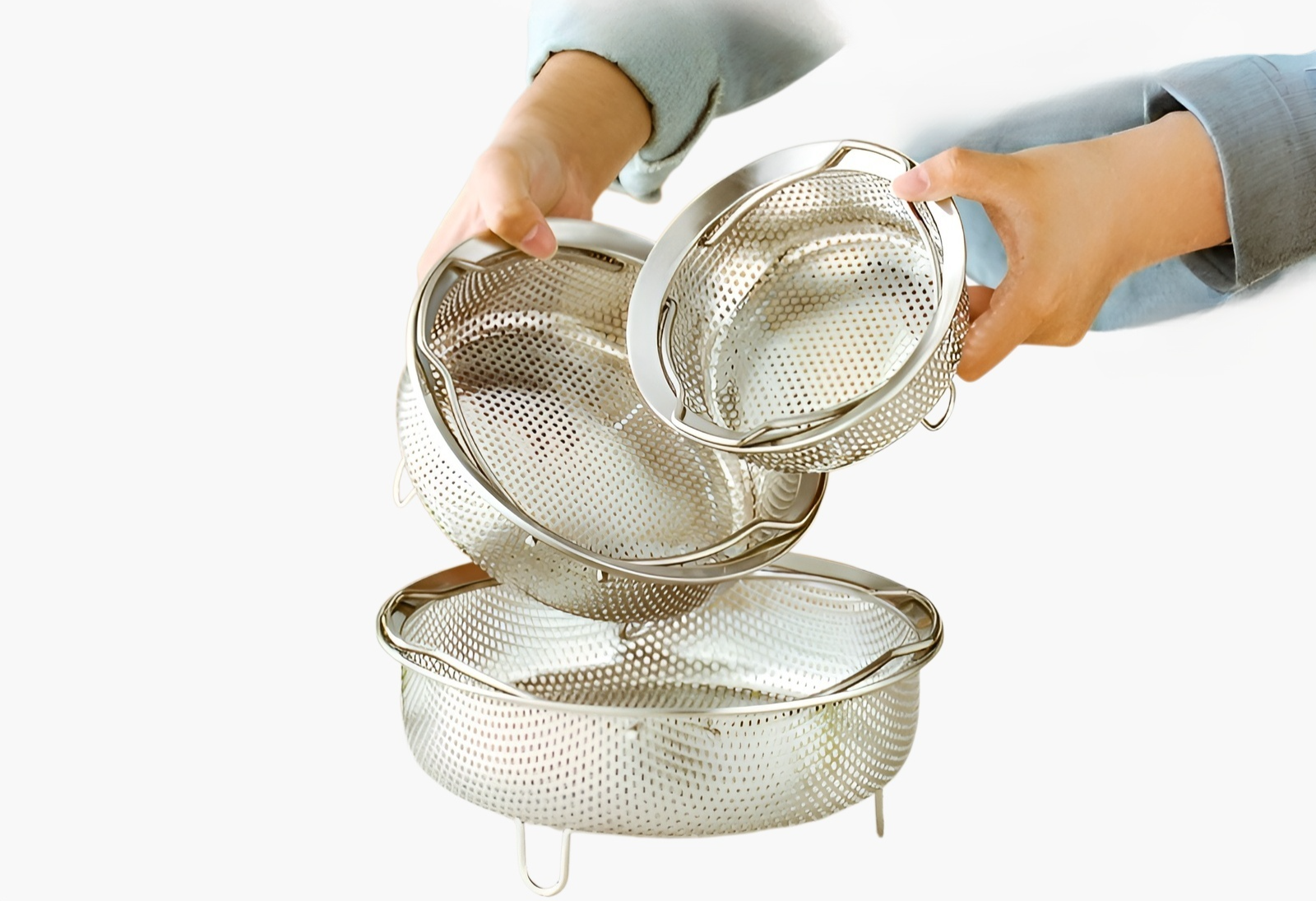내구성 강한 스테인리스 시루, 위생적인 재질, 다양한 크기 선택, 찜 요리 및 만두용 적합, 손쉬운 세척.